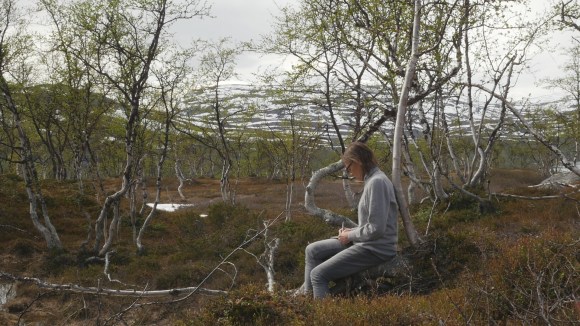 Dearest Mountain Birch, I guess it is about time to try to explain to you what I have been doing, sitting here on your bent branch every morning and evening for almost two weeks. It is actually rather rude of me to do that without asking for your approval or consent or any kind of permission, but I did not know how to approach you in order to ask for your consent, and in many cases I usually choose to “just do it” rather than ask for permission, which often makes things unnecessarily complicated. I nevertheless sincerely hope that I did not offend you by my behavior, especially since I plan to continue with it for a few more days. I chose you of all the birches growing near or below the biological station because you live here on a small hill right by the lake, and have a beautiful view, on the shore. I did not realize that the lake functions like a cooler, so you and your immediate family here below are among the latest to grow out your leaves. Now, you too, have turned green and “dressed up” in small fresh leaves. This time of year, there is no real dusk or dawn, except in the middle of the night, perhaps, because we are here in the shadow of Saana fellm so visiting you in the mornings and evenings is more of a change in the direction of the light, not its amount. Right now, the sky is clouded, though, so those usual shifts of light and shadow do not apply. And I am dressed in my ordinary grey clothes rather than my black “performance” outfit. When I say I have been visiting you that is not completely correct, because I have come down to sit on you and with you mainly in order to listen to the surrounding sounds. Now, for example, I can hear some birds, but on many occasions the traffic on the road between the mountain and the lake provides most of the sounds. Especially the huge trucks travelling to the Norwegian border can be heard from far away when approaching. I wonder what they transport, and where? Perhaps there is a harbor in Tromsø, or something. Besides listening to the sounds with you I often count my breaths slowly, trying to wind down and become present in the moment with you. Twenty-one breaths are my usual duration, a way of keeping track of time, approximately. That is of course a very brief instant in your temporal experience. Although birches do not live longer than 100 or 150 years, that is way more than most humans. And here, where the shift in light conditions is so extreme, with a long night-time, the winter, and a long day, the summer, rather than the constant fluctuation, your sense of time must be different, too. – I actually learnt a lot about your way of life from a biologist who kindly gave me a private lecture today. She explained, among other things, that there are two types of birch woods here, the maritime and the continental ones, and the whole ecosystem in them is different, as well as the form of the birches. Here, obviously, we are in the “maritime” type of wood, with blueberry shrubs [twigs] on the ground and the trunks of the birches relatively straight and singular – well, most of you are bent to some degree, but not as twisted and divided as the ones higher up on the slopes. The term “maritime” refers to the way the birch woods look on the Norwegian side, and even though Lake Kilpis is a lake, of course, the northwesterly winds come from the Arctic ocean, which is actually not that far from here, and bring in sea air. In both habitats one can distinguish the height of the snow from your trunks, because the dark brown lichen that decorate them do not like to live below snow level. That I learned already from the sign board on the nature path [trail]. Why some of you have a completely white bark while others are pale grey, I do not know, and it might be just a coincidence. There are two types of birches that have hybridized, the dwarf ones and the downy birches, and you can see the difference in the autumn, because the dwarf ones turn read rather than orange yellow. I realize I would really like to come and spend some time with you in the autumn, too, and to listen to the sounds of autumn together with you, like we now have listened to the sounds of spring. I want to thank you for your hospitality and generosity and sincerely hope that I have not been too much of a disturbance for you. I hope you can somehow sense my gratitude and appreciation, and I wish you all the best for the coming summer. Let us hope it will be a peaceful, invigorating and productive time for you. Take care! AA.