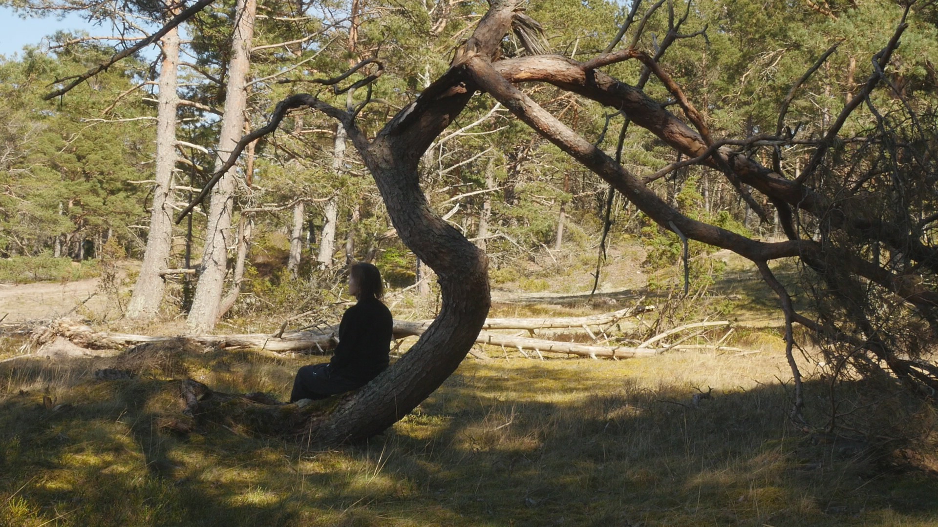 It is eleven pm, almost half an hour past sunset, although the sky and the sea still shine with a pale violet shimmer. The Eckerö ferry from Grisslehamn has arrived, although now most of the cars have already driven past, peace returns. A strange bird sounds behind me, and there are still two cars on the quay, all else is calm. – I looked at the recorded material and was surprised of the small abrupt displacements of the images in the afternoon – obviously I have been careless while placing the camera. Otherwise, the material looked fine. The proportions between the tree, or you, and the human, or me, are quite acceptable. I look very small on the rock next to you, although you are rather small for a tree. How things look in the image and how they appear in reality are two very different things. The same goes for the experience of coming to sit next to you every other hour for a day and trying to write to you, with you – that is something else than what can be seen in the image, and also the effect, feeling and mood created by the images and by the video formed of them. If I will add this text that I am writing, if I for instance read it and record it and attach it as a voice-over to the video, it will change everything again. Time will tell. Now I simply want to say goodbye at least for tonight and thank you for our collaboration during the day. I don’t know if you experienced it as a collaboration or anything at all. For me, however, it has been important to sit here next to you. And I think I will remember this day for a long time –regardless whether I find something worth pondering in these notes. Thus, simply: Thank you. And Good Night!